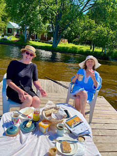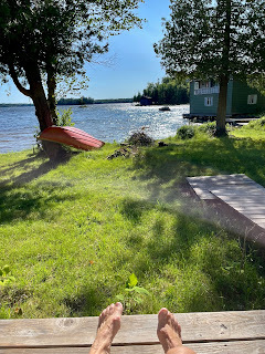 The cottage was a treat, with two dear friends in the sun by the water. Annie and Monique are both much more avid swimmers than I - I barely went in, whereas this morning, they even swam in the rain. Unimaginable. We canoed a bit, read and ate a lot, and talked really really a lot. I confess I'm a bit worn out by all the company; as someone who lives alone, I'm just not used to it. But the trip was a treat. What a gorgeous country we live in. How lucky we are. Have I said that before?