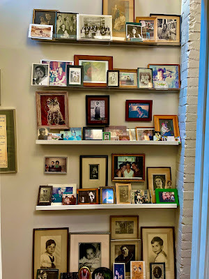 A great-grandfather, grandparents on both sides, parents through the years, uncle and aunt, ex-husband, children, inlaws, a few friends, grandsons. My childhood pussycat Dido painted by my grandmother. So good to get these out of the big box and on the wall. House problems: not just the bees upstairs, but a mouse infestation down. I spent an hour today cleaning out under the sink and trying to patch the huge hole they use to get in, which was hard as it's where the pipes and the water shut-off valve is. I cut up the Kristyn Wong-Tam election sign and patched over the hole, put steel wool in places I couldn't tape. Presumably if that keeps them away from under the sink, they'll just go elsewhere. Hate traps, don't want to use poison. I need a cat.