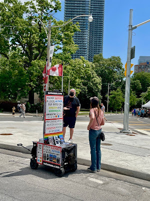 A brave young writer taking marketing into her own hands. And cart.Then the Creative Nonfiction annual conference, on Zoom from Edmonton, a series of gripping panels, talks, webinars. So good to meet friendly nonfiction faces from around the country. At one talk, on research, I was dumbfounded, the young presenter zipping around apps and programs, showing me just how very old I am. At one point, he said, "And then plug in your pen."