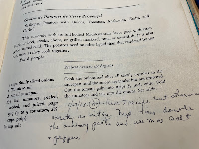 Part husky and shepherd, maybe? Could he be cuter?! I'll be showing everyone pix of our new arrival. Two nights ago, on Sam's recommendation, I watched the first seasons' 3 episodes of Julia, a Netflix series about Julia Child, starring the wonderful Sarah Lancashire, who's British and yet pulls off Julia beautifully. It's so good, so warm, about the love between Child and her husband Paul, about her cold judgemental father and the sexist studio execs who did not believe a cooking show done by a tall awkward middle-aged woman could be a success. But, you realize, she changed the way America ate - at least, some of America. I treasure my Aunt Betty's Mastering the Art of French Cooking, a fifth edition from 1963, the spine broken, Betty's notes throughout - "Less mustard, more tarragon. Delicious." Thank you, Julia!