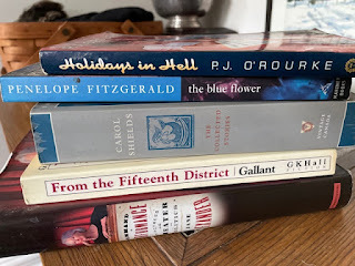 But it's spring. I'm reading essays by Terry Tempest Williams and Margaret Atwood, but someone with fantastic taste left this pile in the Free Library and I took them all inside. So much to read, so little time.