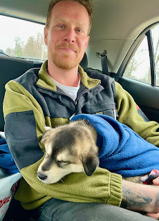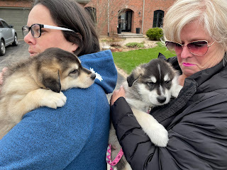 Our new family member is here. Such an emotional day yesterday — I was remembering the births of Eli and Ben, a vivid memory since I was Anna's labour coach and actually cut the tough rubbery cord tying Ben to his exhausted mama. Yesterday was much easier; Anna, Sam, and I just had to rent a car, drive north of Hamilton, and wait for the pup to arrive with his foster family. After many road trips during their childhood, it was the first time the three of us have driven together for decades — so much laugher and reminiscence. Sam is a born comic, Anna a steady driver; I sat in the back and enjoyed.