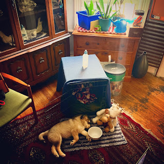 I apologize in advance for the upcoming avalanche of puppy photos. Can you blame me?My writer friend Antanas kindly wrote that he'd enjoyed "Correspondence" in Queen's Quarterly. Writers so appreciate readers who take the time to write. Your piece was lovely in itself and in particular the way it all seems so unlikely and yet the elements fit together so well - touchingly!