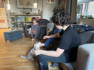 Thursday teaching one of my home groups and my son over for a visit and to go out for dinner, what a pleasure. We're such good friends, so much to talk about, including the New Yorker, which he reads as avidly as I do. It's his last week without his pup, whom we go to get next Saturday.