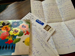 Boasting: today I received not one but two actual in-the-mail letters: from John Sugden, nicknamed Sugdoon, writing from his home in Shropshire, and Nick Rice, nicknamed Nickynicknick, from his supply teaching post in Scarborough. Sugdoon, a red-bearded Brit and friend since 1973 when we shared a communal house on Markham Street, visited TO recently. Nick, friend since 1975 - we were in my first Vancouver show together, and afterward several more - writes regularly; he's a faithful blog reader so always knows exactly what's going on in my life. Well, not exactly, but close. Good to hear from you, guys.