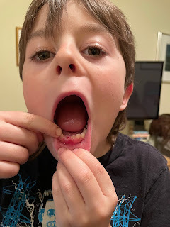 The tooth fairy left $5! Inflation. Eli and I are reading J. K. Rowling's The Christmas Pig, four chapters or so at a time. He nestles beside me, often with his head on my shoulder. Rowling's mesmerizing skill creates a world that's imaginative and intriguing but also filled with genuine danger and fear. I mean, Harry Potter confronts Death Eaters. It doesn't get scarier than that.