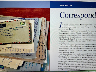 In the meantime, Queen's Quarterly just sent their layout of "Correspondence," the essay that's coming out soon. It's beautiful; they've done such a lovely job, it made me cry. The story of Barbara, my penpal from the early sixties who died at the age of sixteen, has haunted me all my life; finally, I've told her story and introduced her to the world. Thanks to the team, particularly Stephen, at the magazine. Stunning work.