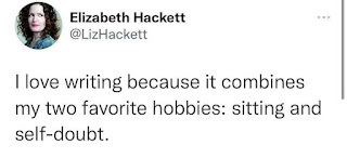 Recently two huge sparrow hawks swept through my yard and perched on a nearby tree. Suddenly my feeder was vacant. Everyone is cold and hungry. A friend wrote from Mexico yesterday about eating huevos rancheros under the hot Mexican sun, and I wrote back, STFU! We don't want to hear about it. We've got months to go.Finally, a perfect description of the writing life. Happy Sunday routine to you too, my friends.