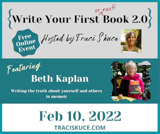 A writing entrepreneur called Traci Skuce has organized an entire week, from Feb. 7 - 11, of online writing seminars, on various topics with many interesting writers, all for free. I was invited to participate and spoke with Traci last month about writing memoir and dealing with sensitive topics; our talk was taped and will air all day Thursday of next week, Feb. 10.