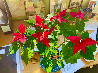 I have five weeks now with no teaching, though perhaps some editing work for various clients. Almost all the Xmas gifts are hidden in my bedroom, many of them from Doubletake. The poinsettia given to me last December, that lived all year in my office, is blooming again. It's beginning to feel a lot like ...