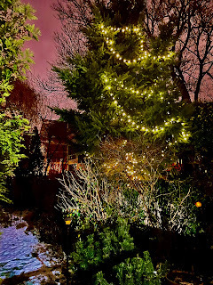 Sam is over and we tried putting my outside Xmas lights on the cedar tree outside, with perhaps limited success - but we tried. Well, he did. Merry Everything.