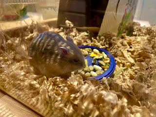 Sam is nervous and does not want to come until we know Robin's status. He was due to come over this afternoon bringing various things we need, including a cage for - yes! - Hamlet the hamster. When I got to the pet store at noon, I learned they'd sold 5 hamsters already this morning, and I bought the last! Thank heavens I got there in time. He's happily ensconced in a temporary cage with seeds, water, a cardboard house, and a toilet roll to chew.
