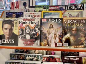 On another note, this was the front row of the Shopper’s Drug Mart magazine section this week: Elvis, Pink Floyd, Jesus. When did Jesus become a rock star? I find that disturbing. Are fanatical Christian nationalists taking over here too?