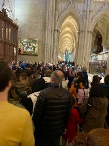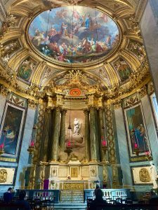 Our Lady was beyond packed, people pouring in. Very difficult to feel a spiritual connection to this sacred place when jostled on all sides by hordes of people with their busy cellphone cameras. But better too many people to view this masterpiece than too few. Our lady is now bright sparkling clean, what a difference from the smudged gloom of before. Merci, Macron!