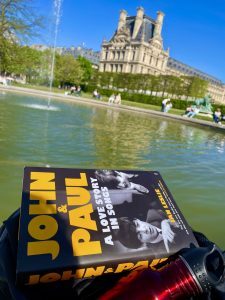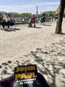 Then the perfect Paris experience — walking across the street to the Tuileries, finding a chair in the shade with a view of the Eiffel tower, and sitting to read for a quiet hour. Sublime — a beautiful spot, Ian Leslie is a very good writer, and this is a very good story. “A love story in songs.”