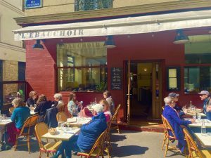 A few streets over is the restaurant L’Ebauchoir, where I’d booked a table for lunch. Lynn and I discovered this place by chance, a classic French resto, almost no tourists, not expensive, great service, good food. A treat. I had the menu, two courses for 17 euros, plus a little glass of Cotes du Rhône and an espresso. Happiness.