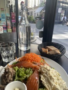 Another task: I needed a few things from a big Monoprix, walked half an hour to the Gare Montparnasse because I’d been to the one there. Got lost but found it, got what I needed after much deliberation — it’s a fantastic store. But then — how to get back? I got completely lost, but completely. Google Maps out every step of the way, trying to figure out in the rabbit warren of streets if I was even heading in the right direction. Every bus stop I came to, I checked if one was going my way, but they never were. Finally, thirsty, legs aching, I stopped at the perfect café, sat outside in a shady seat facing a quiet, elegant square, and had a cold Belgian beer and the fat green olives that came with it. The quintessential Paris experience — when in need, sit at a café and figure things out.