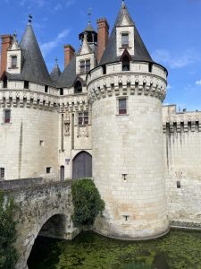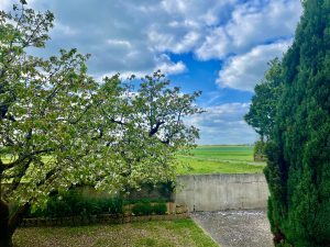 This morning Lesley and Duncan spent two hours driving me around the countryside, to take in villages and a divine chateau, now a luxury hotel, in a middle of the village of Dissay. The French countryside is so different from England’s; as Lesley pointed out, the populations of France and England are more or less the same, but France has far more land and is far less crowded. All around us, green fields dotted with small villages, with, always, a medieval church spire pointing to god in centre ville. As we drove through the yoke-yellow fields of rapeseed lined with rows of trees, I kept saying, David Hockney would want to paint this. And probably has.