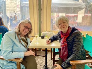 Enfin, Montpellier, my friend waiting, walking back to their apartment in centre ville for apèritif and dinner and much much talk. Lynn and Denis, the other L and D couple, have been married over fifty years. I was at their wedding in 1971. Incroyable.