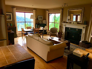 Shari and I should be hiking, but I'm here to work, and so is she. We're in the perfect place, a one-bedroom suite with a kitchen. She brought enough food for a large crowd, so no restaurants for us, we're eating home-cooked food in front of the fake fire which glows red and make the room cosy. We watched Roadrunner last night, a documentary about Anthony Bourdain — despite the huge successes of his life, a man afflicted with the black dogs of depression and addiction. Not a happy story, but poignant and compelling.