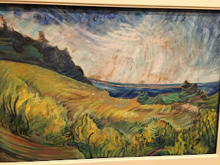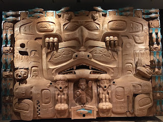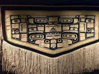 Today we attended a Zoom session about publishing, which would have been interesting if we didn't know anything about this subject, but we do. I went to the Audain Gallery which has a stunning collection of First Nation artefacts - masks, blankets, bentwood boxes - and paintings by Emily Carr and other West Coast artists and, later, photographers. A beautiful gallery, all glass and wood.