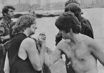 This is the pic I posted today: Lennon and McCartney arm-wrestling, with a note about my sixties memoir All My Loving.