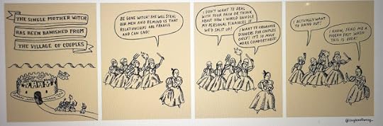 What she draws here happened to me; the instant my husband and I separated, I was no longer invited to dinner parties. Ever. Not once. I guess I made wives uncomfortable, or just the table arrangement awkward and unbalanced. So I started to invite people often for dinner here, so I'd have an adult to talk to, and my children could hear grownups conversing. Now they're both in the world of hospitality and food, and neither is a vaccine sceptic or a rightwing blowhard. Because they learned to argue and listen and think.