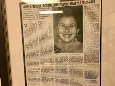 At my doctor's office yesterday, I saw this on the wall and read it for the first time, an obit for Dr. Mimi Divinsky. She was our beloved family doctor when we first got to Toronto, a wonderful woman, a social activist with a big conscience and heart who died far too young. Still missed, Mimi. Thank you for everything.