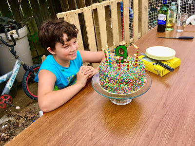 On Saturday was his other party in the backyard with many of his friends. Anna, as you know from this blog, looks after a lot of children, including some who regularly arrive to spend the night due to parents' work schedules or crises. There is always room for one more. Eli and Ben are growing up in a very big extended family, almost none of whom are blood relatives.