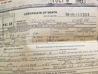 I read the obits these days; what an old person thing to do. So interesting, what those writing choose to focus on and remember, the life we try to spy through the flowery prose. But today, something else: I found a death certificate with my name on it.