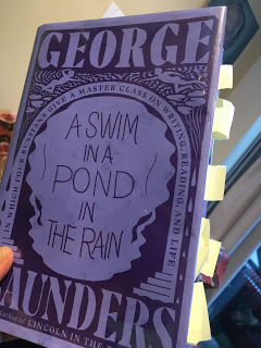 And I'm reading George Saunders' "A swim in a pond in the rain," his analysis of the short stories of Russian masters Tolstoy, Chekhov, Turgenev, Gogol, and from that, a deliberation on writing. Beautiful.