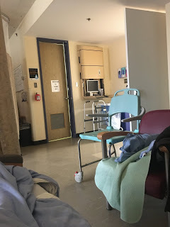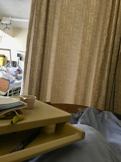 So that had me in a good mood! No food plus lack of sleep, a lot of pain, and the joys of hospitals. My first night I was royalty, in a single room with a window, I thought I'd hit the jackpot. But no, next morning they moved me to a four bed ward. Hell is other people, especially when those people have the windows. Windows not only mean light, they have SILLS, valuable real estate in those crowded cubicles.