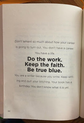 Bruce and our host in front of Richard's house. If for no other reason than the fact that Richard is able to access the book that way, I'm glad I made the audiobook. Something important last week: as I lay in bed at 4 a.m. doing my fretting thing - professional failures, personal ones too - a voice emerged from the darkness. And that voice said, "LET IT FUCKING GO!" Wise words: Let it fucking go. And I resolved to do that. I printed it out and it's tacked in front of my desk.