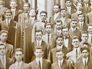 Second row, second from left with his suit in shadow, looking serious, sad, and tired, as he possibly was, as the second oldest son of seven with the weight of an impoverished immigrant family on his shoulders. Probably like most of the young men pictured. Eventually a successful businessman who put one brother through law school, another through med school, and helped his sisters make advantageous marriages. You helped us all, young Mike. I cannot thank you enough.