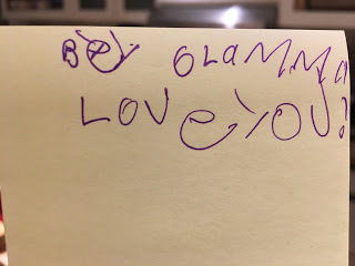 After the kids left, I found this in the kitchen, scribbled on a post-it - Eli loves my stash of post-its. Before going to bed, I used to leave notes in the kitchen for my parents when they were out at night. If Eli is a note writer, all is well with the world.