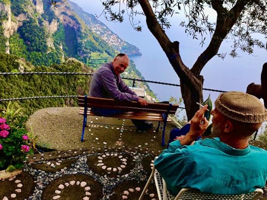 Then a director wrote from California to say he loved Finding the Jewish Shakespeare and wants to correspond about my work and his. My actor friend Richard Fowler, whom Bruce and I visited in 2014 in his village in the hills above the town of Positano, wrote to say he has downloaded the memoir audiobook. Richard has severely bad eyesight, which is a terrible irony since his house boasts the best view in the world — the whole Amalfi coast high over the Mediterranean.