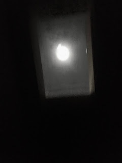 Here's the full moon last night through my ceiling skylight, a lamp, a beacon, a friend.
