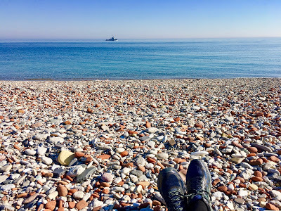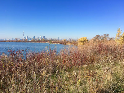 I rode down to the lake and then east to the Leslie Street Spit, a long finger of land jutting into Lake Ontario, a good place to see birds and wildlife - coyotes, apparently, though there are coyotes in Cabbagetown too, now - and crowded today. The intense pleasure of the quiet, the sound of the lake and the almost silent rotation of the wheels beneath me - what a magnificent machine the bicycle is! - and above, the big blue sky. Sitting on a beach to eat my ham sandwich. And then a slow journey home, feeling every bounce on my too-hard bike seat. Aching legs now.