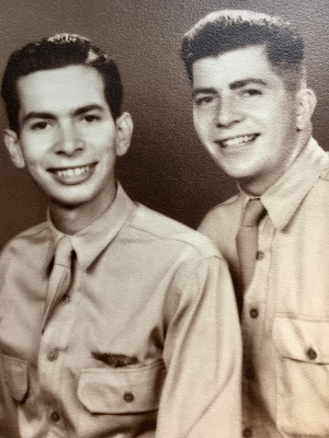 At five to eleven on yet another glorious day, four old planes flew high above in formation. I listened to the Memorial Day events from Parliament Hill, thought of my family members who served to defeat evil, and posted Dad (on the right) and his brother Edgar in 1944 on FB.