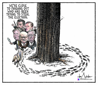 Except that he's still there. Jason said today a pundit he follows has been tweeting for months about the possibility of a "fascist coup," Bill Maher has been talking about it too, and that's what has begun. I actually thought the Repulsives, seeing the multitudes against their guy and the dancing in the streets at his defeat, would decide it's in their best interests to cut him loose. But I forgot - 71 million people voted for him, most of those people are fanatics with guns, and his party is without either backbone or human decency. They've all drunk the Kool-Aid of Fox News and QAnon. Let's not forget that hundreds of people drank poisoned Kool-Aid and committed suicide at the behest of a lunatic.
