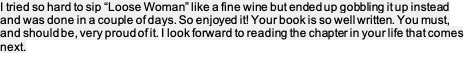 From Ian: It's a terrific read. Quite the story, quite a life, to date; I wonder what your next "part" will bring. I'm amazed at the rich detail in your recollection. I hope the book receives lots of favourable attention. And somewhere along the way, I hope you were charmed by an uncircumcised penis.