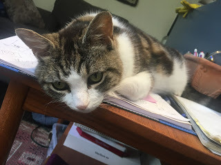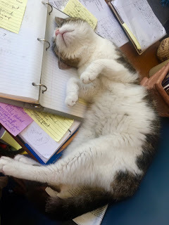 While I'm gone, Nicole will be here, taking care of Anna's cat and the house. Here's what my new friend Naan thinks of my busy days, as she flops on my daytimer. I love having a cat around again. She yowls piteously, just like me.
