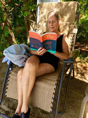 It was a beautiful summer day, and there was no renovation on any side - just breezes, birdsong, the regular city hum. I did Gina's line dancing class for the first time in ages - good for the brain as well as the bod, where DO these feet go? And then Jason came, we set ourselves up outside and got to work. These are the things a writer needs to do these days: set up a Goodreads page for the new book. Set up an Amazon author page. Discuss how to revise this website and what the Zoom launch will entail. Prepare the email blasts to go out soon. Send out a MailChimp newsletter about the book to nearly 400 former students. And more.