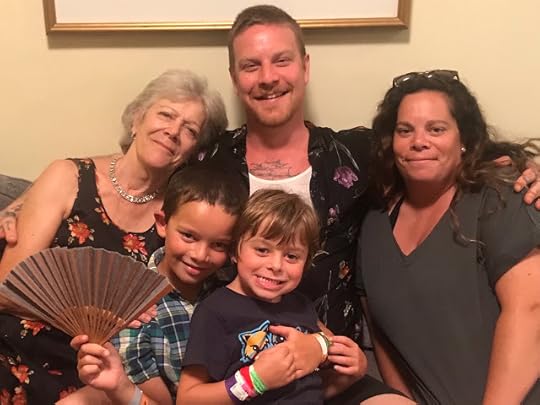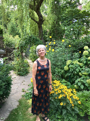 So lucky. Blessed. Blessing: when she was preparing the boys' meals, Anna asked if I had cucumber since that's the only vegetable Ben eats. I said, Sure, and went to the garden to pick one. Blessing: Anna brought paintings by the boys and an embroidered wall hanging she'd commissioned from an Indigenous craftswoman of Marilyn, my turquoise bicycle. Other welcome gifts: many e-cards and FB greetings and a call from Dustin, Sam's good friend from high school - "Hi Ma!" More good wine, a plant from Cathy in Newfoundland, a journal from Lani in Ingersoll, a donation to Medicins Sans Frontieres from Ken: "In gratitude for the 70 years of Beth Kaplan." LOL.