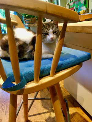 The birds are back! For months, they've ignored my feeder; I scoured it out twice, bought premium black sunflower seed - no birds. I called a bird store; they had no idea what could have driven them away. But now, suddenly, they're back. Of course, because now I'd rather they weren't there for the next month; I am cat-sitting for Anna, and her cat Nan, though old and sick, is a ferocious hunter. So, not going outside, which does not please her. To show how displeased she was, she puked twice last night - not on the hardwood floor, no, she specifically chose both living room rugs.