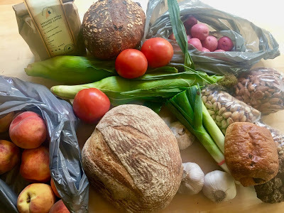 Here's the good news: I did watch Modern Times on TCM by and with Charlie Chaplin, stunning. And it's summer, and that means peaches and other good things. Hooray for the Saturday St. Lawrence Market. Appreciated even by the very old. And very crabby.
