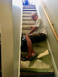 In the night, I awoke, feeling as if my body was electrified, currents charging through, zapping me. I thought I was having a heart attack and came down to look it up on my phone. It said something about anxiety, and also about MS, that it might be an early symptom of MS. Put the phone down. Not going there right now. Ate some peanut butter, my soporific of choice, and managed to sleep. When the stores open will ride downtown to buy fresh towels and bath mats for my tenants, as theirs are in garbage bags on the deck. John is arriving at some point with new parts for the toilet upstairs, and then we're going to tear out the carpeting on the stairs, too sodden to save.