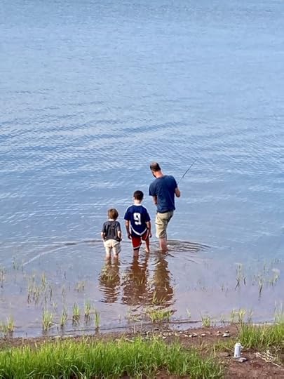 Blessing: telling a story about seeing a water snake at the cottage, and Ken and I together reciting the beginning and end of a favourite D. H. Lawrence poem: "A snake came to my water trough, and I in pyjamas for the heat, to drink there."