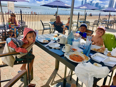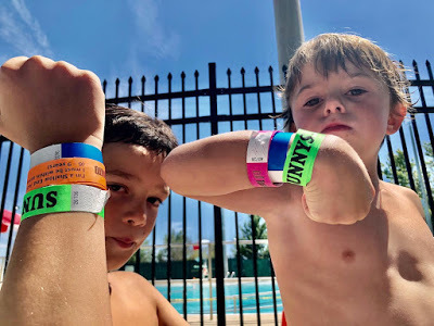 Speaking of Anna's - today I went to swim in Sunnyside pool with her and the boys. There's all kinds of protocol now, of course, including time-limited 45 minute swims; they have to leave and line up again, so she goes usually for two sessions. Her boys are like seals, like fish, like marine mammals, Ben especially, at just five, doing a powerful breast stroke underwater with no goggles. A marvel. And then - our annual tradition - I took them and their friend Imani to the restaurant on the boardwalk by the beach. They're driving to Nova Scotia next week and I won't see them for a month!
