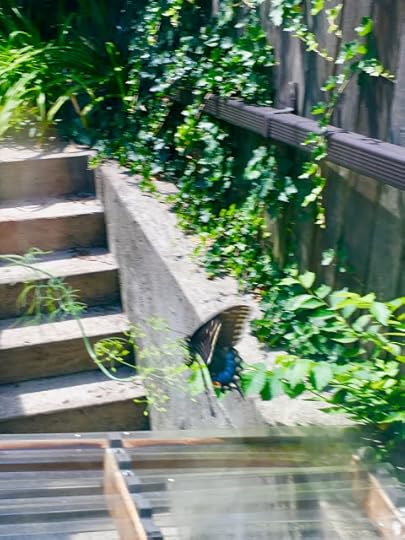 It fluttered so on the other side of the window, I couldn't get a good shot.Wayson's symbol was the butterfly. I have no doubt that was my friend, come back to let me know how glad he is the book, the slow progress of which he followed, is finally finished, that he's proud of me and happy to be part of it.